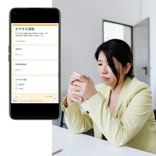 保護者はアプリから入力するだけで、いつでも連絡することができます。